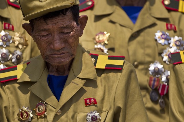 اجتماع کهنه سربازان ارتش کره شمالی در میدان کیم ایل سونگ پیونگ یانگ به مناسبت شصتمین سالگرد پایان جنگ دو کره