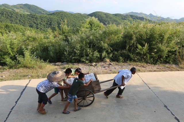 حمل آب آشامیدنی در روستایی در استان هونان چین