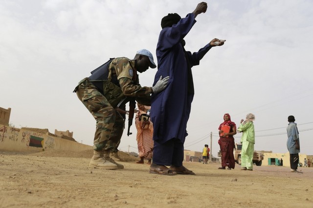 تفتیش یکی از رای دهندگان انتخابات ریاست جمهوری مالی از سوی یک سرباز سازمان ملل