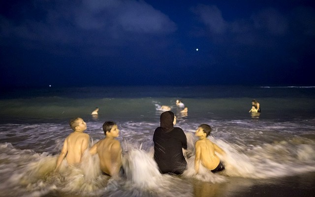 خنک شدن در ساحل شهر حیفا پس از افطار