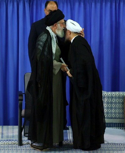 بوسه رهبری بر پیشانی روحانی (عکس)