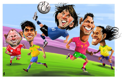 قیچی مسی در کنار بزرگان فوتبال (کاریکاتور)