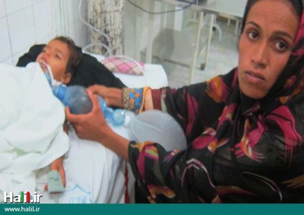 مادر فاطمه روز گذشته هم گفته بود: فقط به ما گفتند عقرب نیشش زده و این دستگاه را که می بینید وصل کردند و با این سرم و بهم گفتند خودت باید کنارش باشی و با این دستگاه کمکش بکنی.