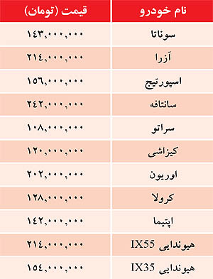 قيمت برخی خودرو‌هاي وارداتي (جدول)