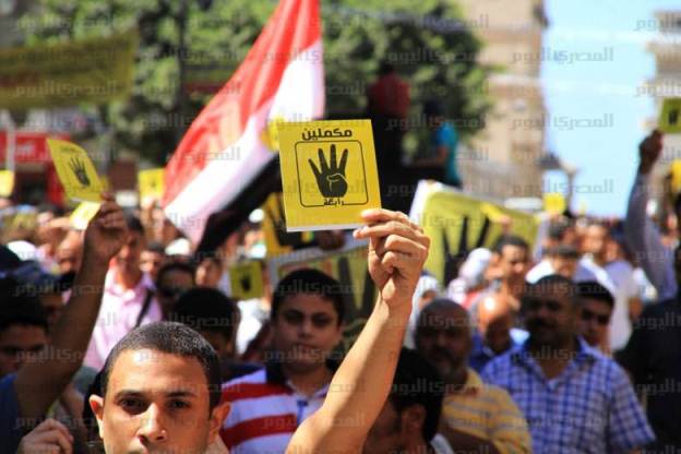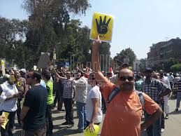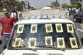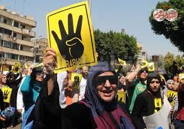 حامیان مرسی در تظاهرات خود از نماد چهار انگشت استفاده می کنند که اشاره ای به نام میدان "رابعه العدویه" قاهره است. این میدان محل اصلی تحصن و تجمع حامیان مرسی بود که در حمله ارتش و نیروهای امنیتی مصر و کشته شدن صدها نفر یایان یافت.