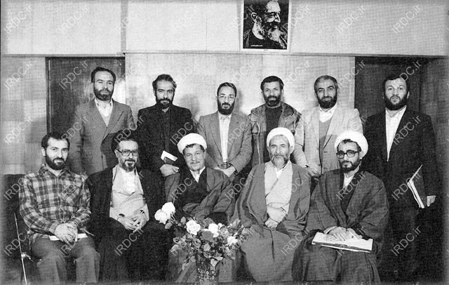 بالا از راست: منوچهر متکی، علی قائمی امیری، حسینی برمایی، سیدزاده، بشارتی، کتیراییپایین از راست: اسدالله بیات، محمد یزدی، هاشمی رفسنجانی، موسوی خوئینی ها، مرتضی الویری