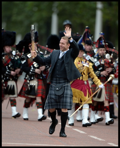حمل مشعل بازی های کشورهای مشترک المنافع در سال 2014 در اسکاتلند از سوی کریس هوی قهرمان دوچرخه سواری بریتانیا