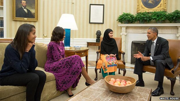 عصرایران؛ شیرین ساوالان پور- ملاله یوسف زی فعال پاکستانی حقوق بشر و حقوق زنان روز گذشته با خانواده باراک اوباما رییس جمهوری آمریکا در کاخ سفید دیدار کرد.