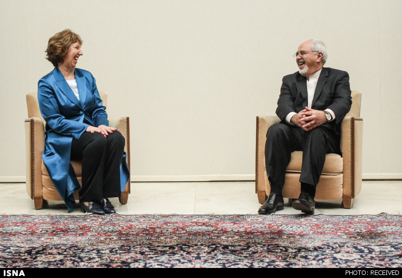 ظریف و اشتون پیش از شروع اجلاس عکسی به یادگار انداختند که البته به دلیل عارضه کمردرد ظریف دو طرف نشسته عکس گرفتند.