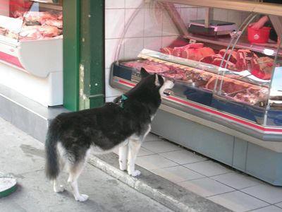 قصاب متحیر از حرکت سگ منتظر ماند.