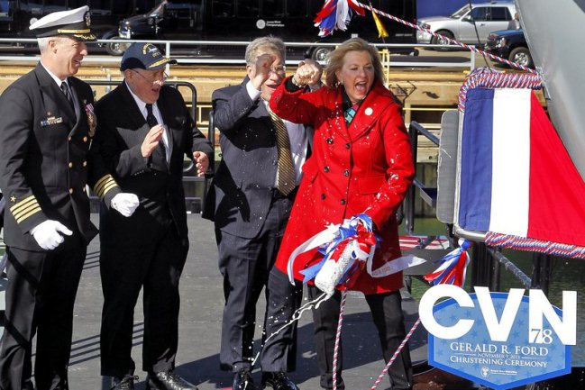 "سوزان" دختر جرالد فورد رییس جمهور اسبق آمریکا در مراسمی ناو هواپیمابر " یو اس اس جرالد فورد" را در ویرجینیا افتتاح کرد