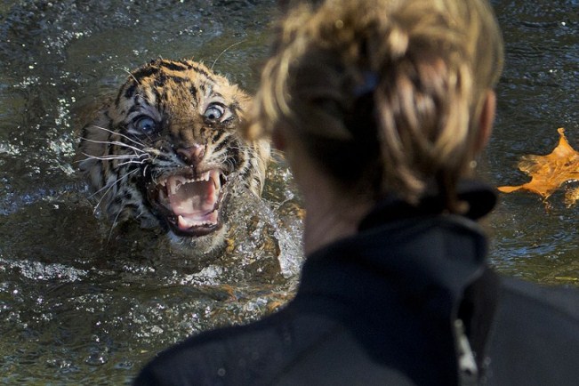 واکنش توله ببر 3 ماهه به گرفتن تست شنا برای نخستین بار در باغ وحش واشنگتن
