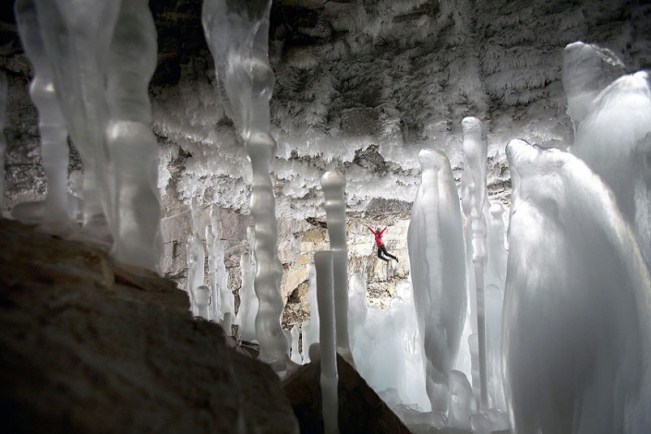 بالا رفتن از گریستال های یک غار یخی در ایالت بریتیش کلمبیا کانادا