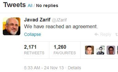 - ظریف در تویتر نوشت: ما به توافق رسیدیم.