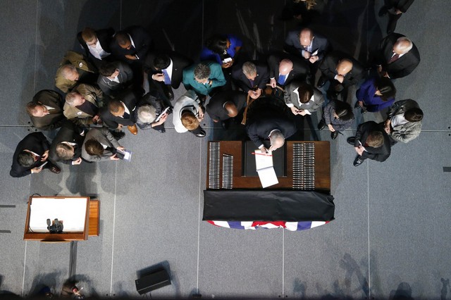امضای لایحه قانونی شدن ازدواج همجنسگرایان از سوی فرماندار ایالت شیکاگو آمریکا. خودنویس های زیاد روی میز برای این است که آنها را به افراد خاص به عنوان یادگاری هدیه دهند