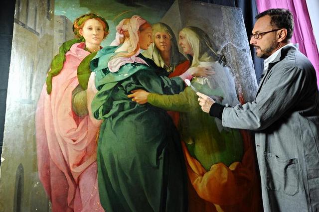 آماده کردن یک تابلوی متعلق به 5 قرن پیش در ایتالیا برای نمایش در یک گالری در سال آینده