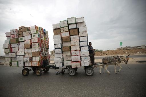 عصر ایران - حمل بار توسط یک الاغ در اردوگاه جبالیا در شمال منطقه غزه فلسطین (منبع: خبرگزاری فرانسه)