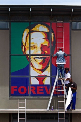 نصب پوستری بزرگ از نلسون ماندلا در شهر کیپ تاون آفریقای جنوبی