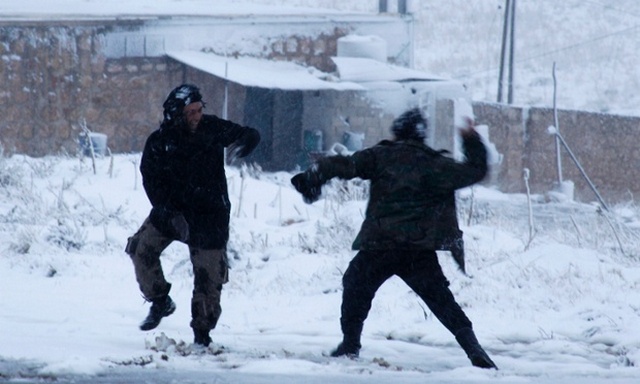 برف بازی شورشیان مسلح در سوریه در شهر خان تومان در حومه حلب