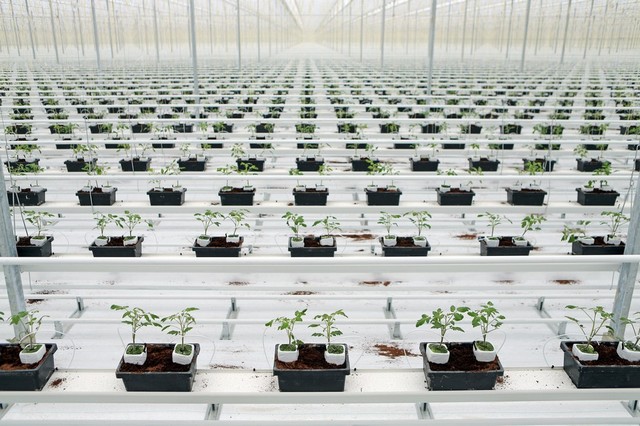 کشت گوجه در گلخانه ای در ویتنبرگ آلمان
