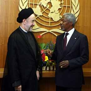 دبير كل سازمان ملل از سيد محمد خاتمي،رييس جمهور سابق كشورمان،خواست تا براي گفت‌وگوهاي بيشتر ميان ايران و آمريكا تلاش كند.
