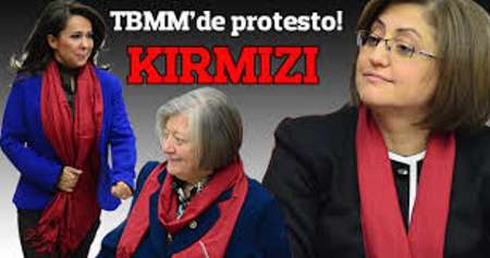 نمایندگان زن از احزاب ˈعدالت و توسعهˈ و ˈصلح و دمکراسیˈ در اعتراض به درگیری ها و ناسزاگویی روزهای اخیر در مجلس ترکیه، شال های قرمز به گردنشان بستند.