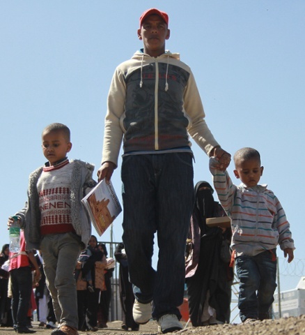 بازگشت یک مرد اتیوپیایی کارگر در عربستان به فرودگاه شهر آدیس آبابا پس از اخراج از عربستان