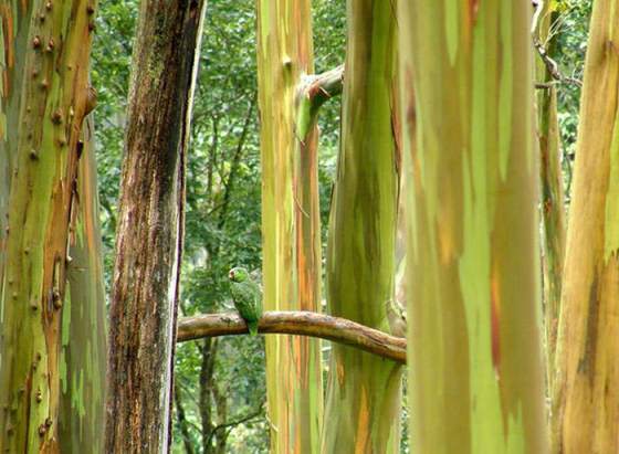 درختان این جنگل که از گونه های اکالیپتوس هستند، «رنگین کمانی» نام دارند و در نیمه شمالی کره زمین به شکل طبیعی در کشور گینه و جزیره سولاوسی اندونزی رشد می کنند.