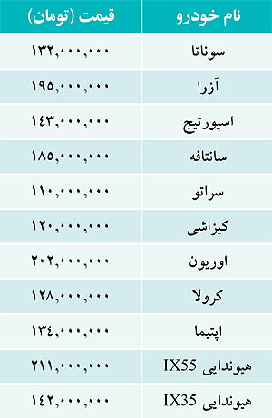 قیمت خودروهای داخلی و وارداتی در بازار (جدول)