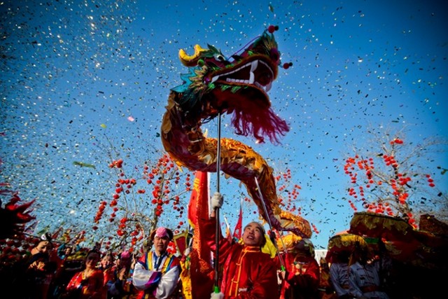 رقص اژدها در پارکی در شهر پکن به مناسبت سال نوی چینی
