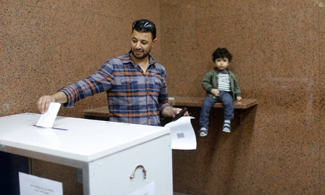 یک شهروند مصری مقیم دبی در حال رای دادن در رفراندوم قانون اساسی جدید این کشور