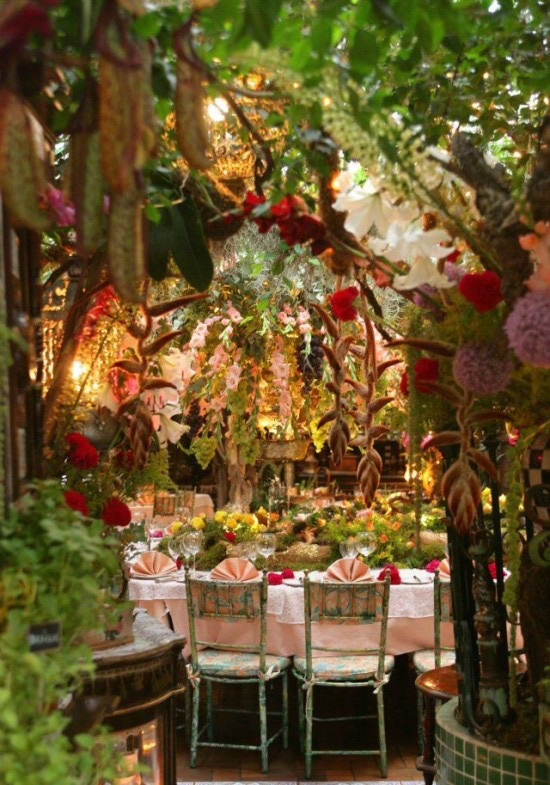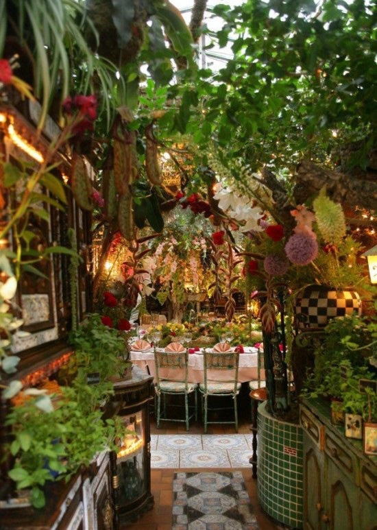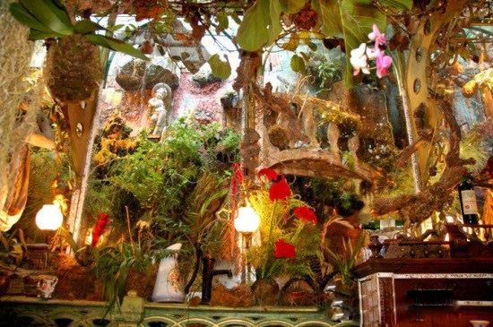 این رستوران بسیار خاص و به جرات می توان گفت منحصر به فرد است. تقریبا تمام فضای آن به غیر محل های قدم زدن و میزها با گل پوشانده شده است. در این رستوران حتی پیدا کردن منوی غذاها نیز کار سختی است زیرا در میان گل ها پنهان شده است.
