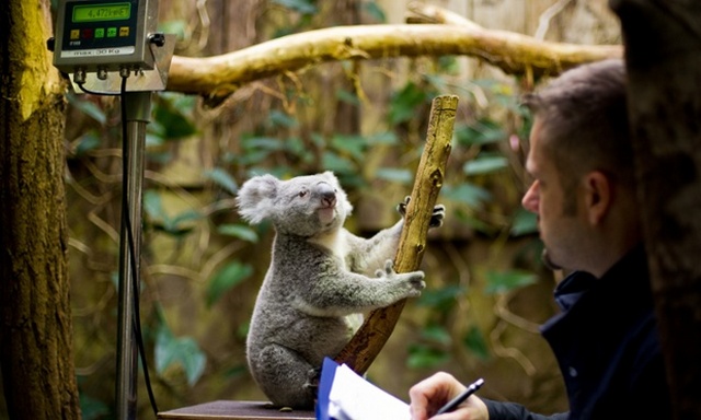 وزن کردن یک کوالا در باغ وحش دویسبورگ آلمان