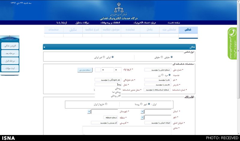 درخواست الکترونیک شکوائیه