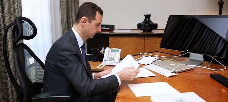 عصر ایران - دفتر کار بشار اسد رئیس جمهور سوریه در محل کاخ ریاست جمهوری در دمشق.