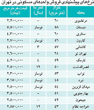 از طرف دیگر در خیابان جنت آباد واحد نوسازی به متراژ 67 متر مربع با کلیه امکانات به‌دلیل پول لازم بودن مالک متری 4 میلیون و 300 هزار تومان برای فروش پیشنهاد شده است.