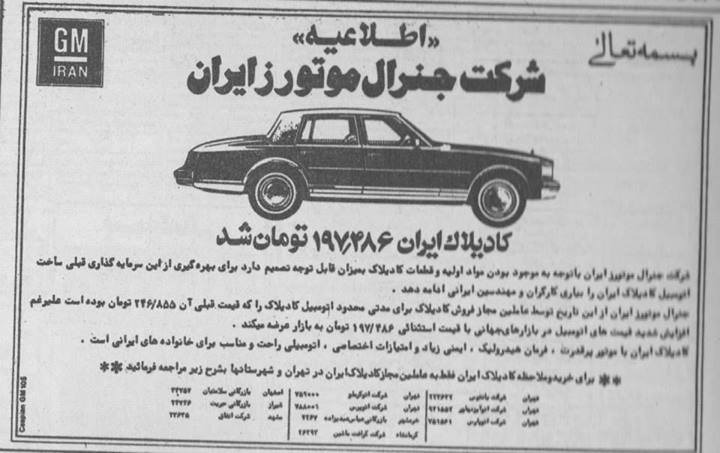 آگهی فروش کادیلاک در سال 1358 قیمت 197 هزار تومان