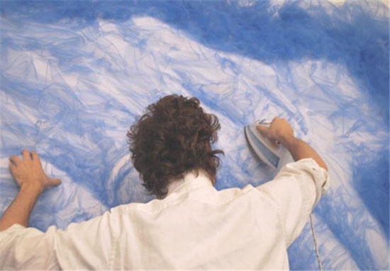 وی به وسیله این تکنیک و تا کردن بعضی از قسمتهای پارچه به بعضی از نقاط با فشار آوردن و نگه داشتن اتو رنگ بیشتری میدهد و چهرههای زیبایی بر روی پارچههای ابریشمی خلق میکند و با مهارت به چهرهها عمق میدهد.