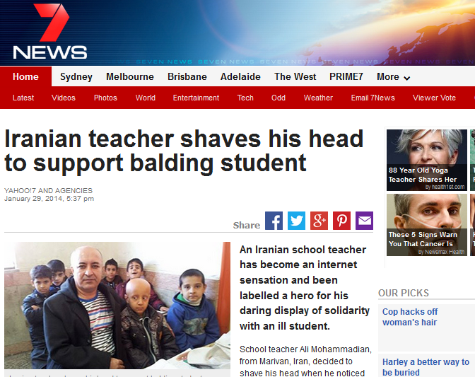اقدام معلم مریوانی در تراشیدن سر خود برای اعلام همبستگی با دانش آموز بیمارش با بازتاب های گسترده ای در میان رسانه های خارجی روبه رو شده است.