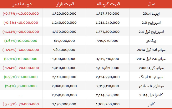 جدیدترین قیمت محصولات "کیاموتورز" در بازار (جدول)