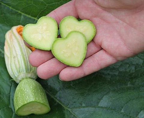 این کشاورز، میوه ها و سبزیجاتی مثل خیار، گوجه فرنگی، کدو تنبل، لیمو، ماندارین، پرتقال، بادنجان و کدو را در قالب هایی به شکل قلب و با اندازه های مختلف قرار داده است و می گوید بین یک هفته تا سه ماه صبر کرده تا قلب هایش به ثمر نشسته است.