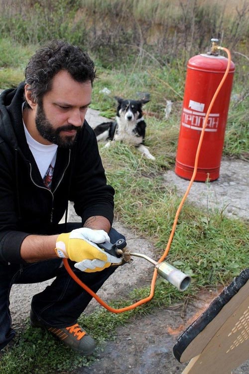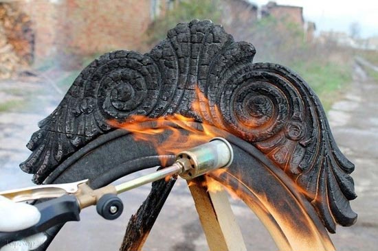 تاپ ناپ: طراحی اوکراینی به نامYarsolav Galant روش جالبی در رنگ آمیزی مبلمان و کمد های چوبی دارد. او سطح چوب را با دمایی حدود 2000 درجه فارنهایت می سوزاند و ماده ای خاص به نام epioftonol را به سطح سوخته میزند.