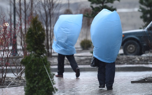 پوشش کارکنان استادیوم المپیک شهر سوچی روسیه برای در امان ماندن از باران