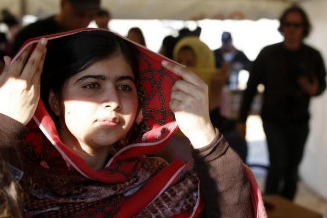 بازدید ملاله یوسف زی از یک اردوگاه آوارگان در مرز سوریه و اردن. ملاله دختر 16 ساله پاکستانی فعال حقوق کودکان و زنان است و سال پیش به دست طالبان ترور شد اما زنده ماند.