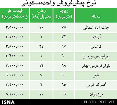 دنیای اقتصاد در ادامه نوشت: طبق بررسیهای سامانه مجازی بازاریابی مسکن موسوم به ایرانفایل در میان فایلهای پیشفروش، برخی واحدهای مسکونی با قیمتی پایینتر از میانگین قیمت محلههای مختلف شهر به بازار عرضه شدهاند که میتواند برای متقاضیان کمبضاعت بازار موقعیت مناسبی برای خرید باشد.