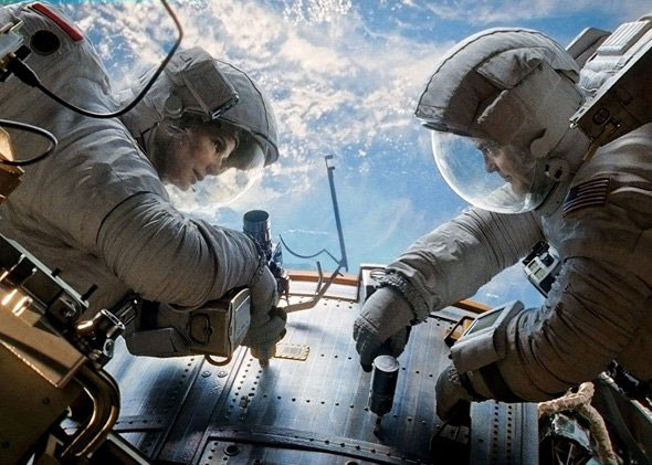 فیلم سه‌بعدی فضایی «جاذبه» ساخته «آلفونسو کواران» که پرفروش‌ترین فیلم در میان نامزدهای اسکار امسال است روایتگر داستان مهیج و دلهره‌آور دو فضانورد با بازی «ساندرا بولاک» و «جورج کلونی» است که بر اثر انهدام یکی از ماهواره‌های جاسوسی روسیه و پراکنده شدن تکه‌های بدنه آن در فضا و برخورد آنها با شاتل فضایی‌شان در فضا گمشده‌اند. البته در اغلب صحنه‌های فیلم تنها «بولاک» در میان انبوهی از تجهیزات فضایی معلق در فضا به نقش‌آفرینی مشغول است که برای بازی در آن برای دومین‌بار نامزد اسکار بهترین بازیگر زن شده است.