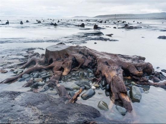 این باد شدید چند روز در ساحل وزید و هزاران شن و ماسه را جابجا کرد تا این جنگل باستانی احیا شد.