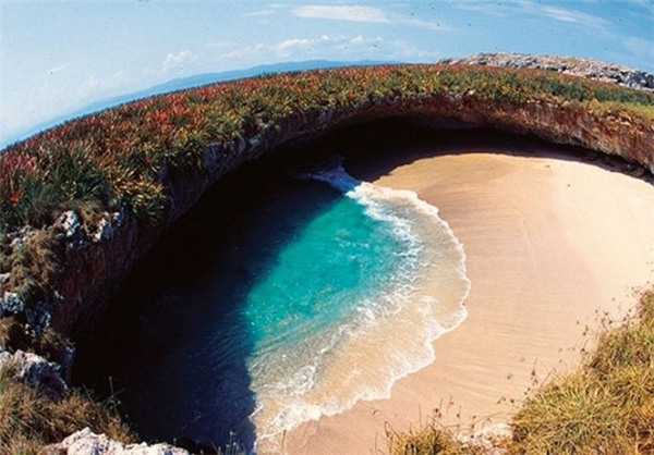فردا - این ساحل اسرارآمیز در «پورتو والارتا» در نزدیکی شهر مکزیک داخل یک دهنه قرار گرفته است.