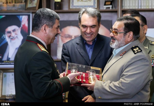 عصر ایران - در دیدار وزیر دفاع جمهوری آذربایجان با سرلشکر حسن فیروزآبادی رئیس ستاد کل نیروهای مسلح ایران در تهران دو طرف به یکدیگر هدایایی دادند.