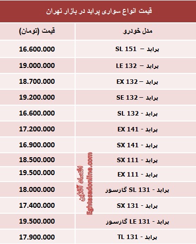 جدیدترین قیمت انواع پراید (جدول)